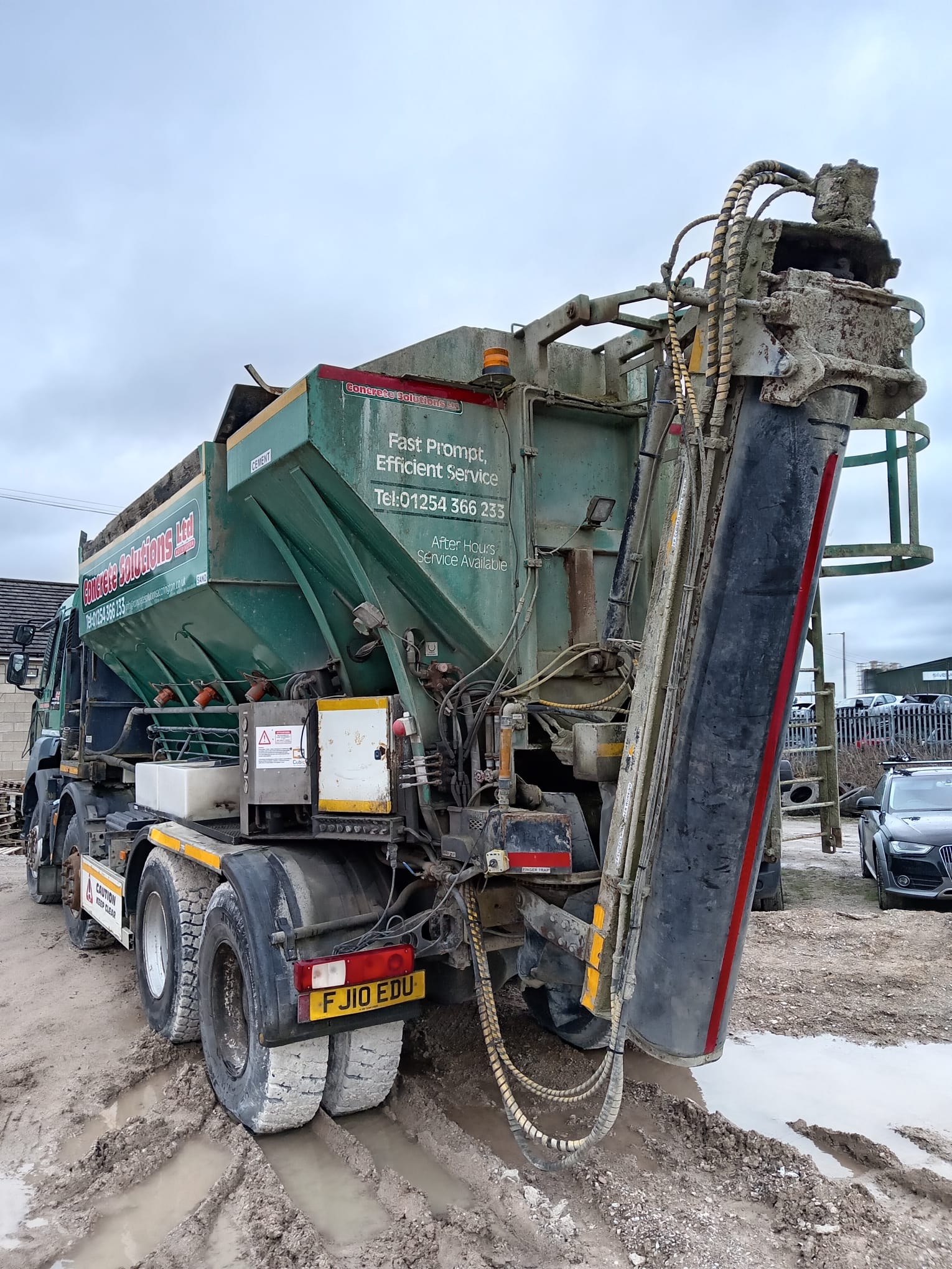 All parts, training and warranty available. It could be remounted as a static mixer on a frame for precast or onto another chassis if needed.