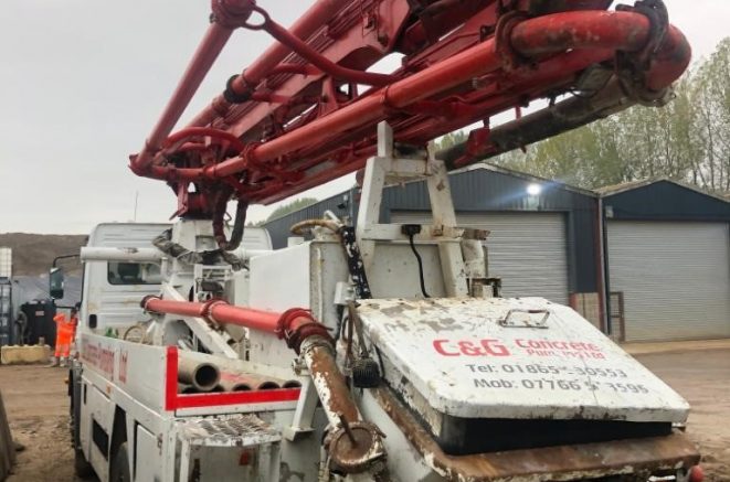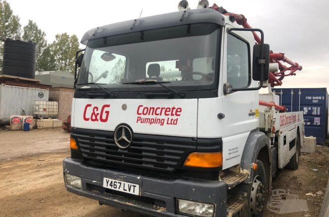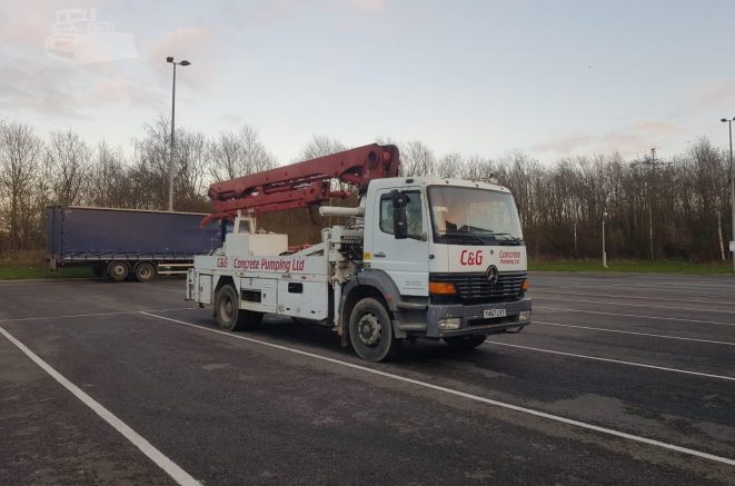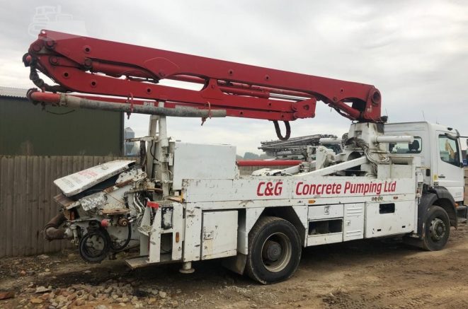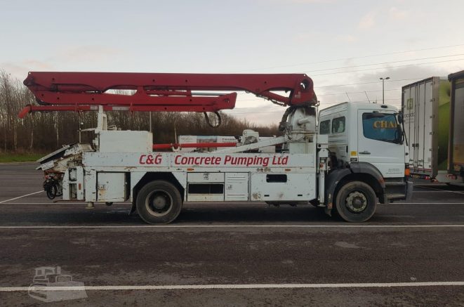 Putzmeister M20 Mobile Concrete Pump mounting on 2001 Mercedes Atego.
